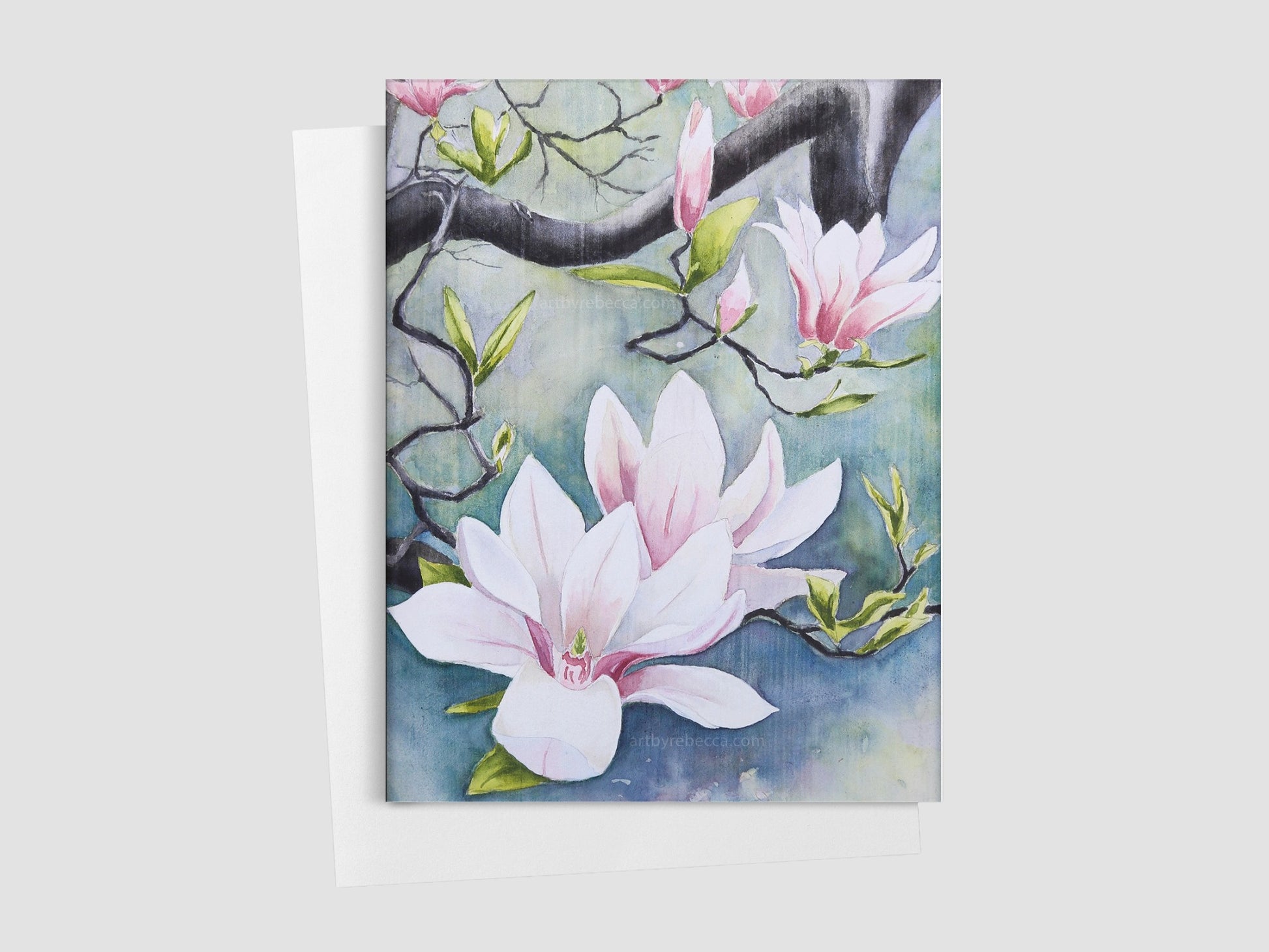 Proudly printed in the USA on premium, high-quality paper, these cards boast a luxurious feel and vibrant reproduction of Rebecca's original artwork. Each card comes complete with its own crisp envelope, ready for you to share a personal touch, celebrate a special occasion, or simply brighten someone's day.
