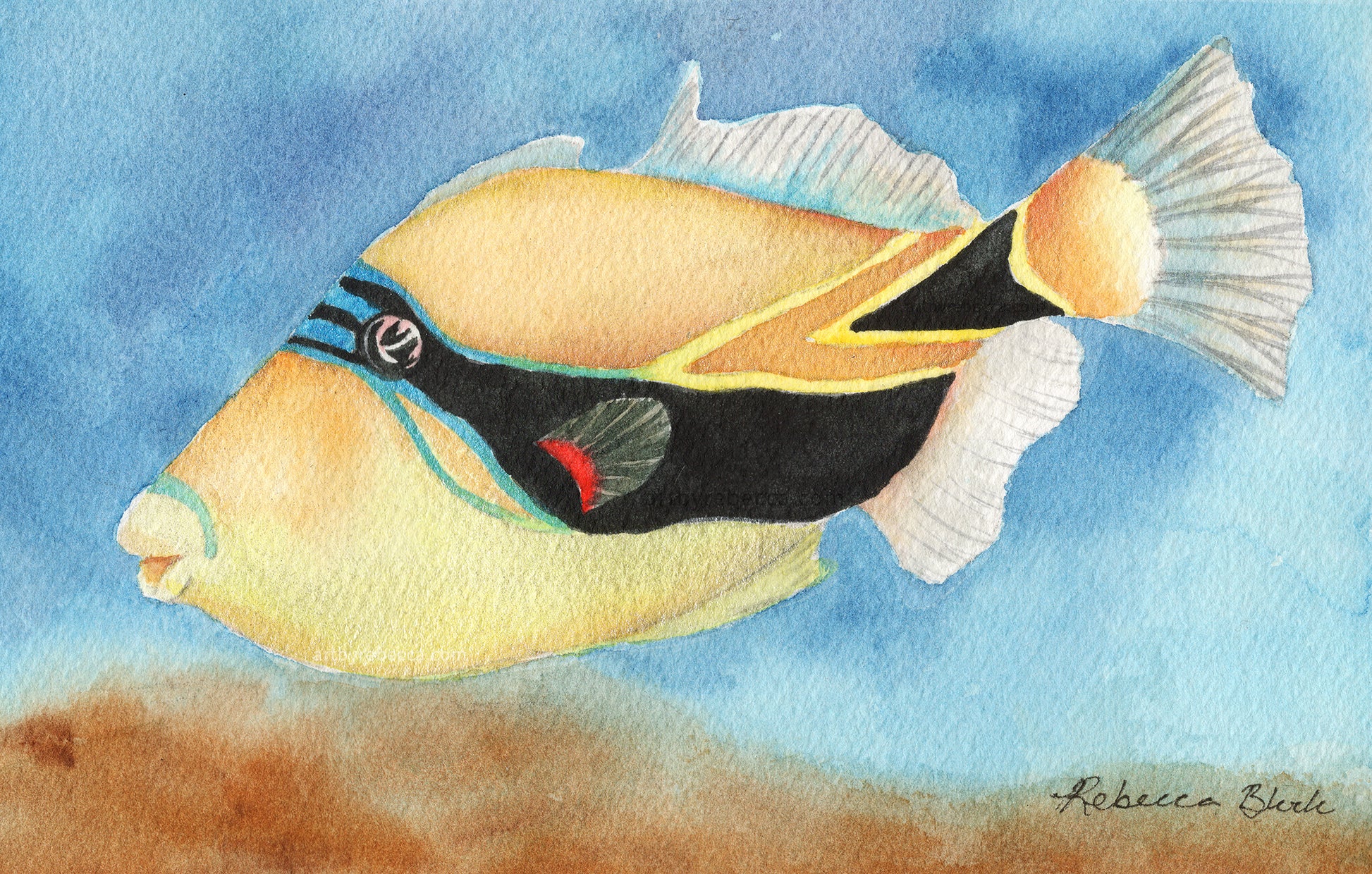 5x7" original watercolor on paper with shimmery silver scales and metallic blue striping, Hawai'i's state fish is sure to delight both on your wall and in the water.