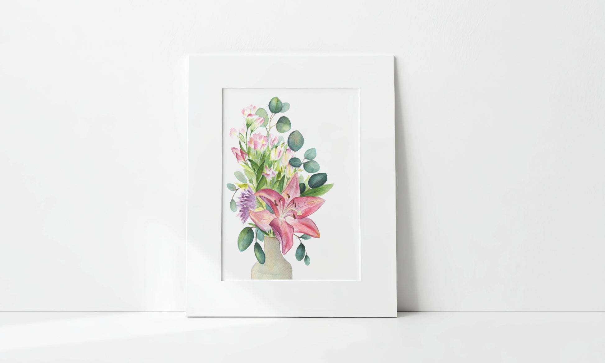 "Lily and Eucalyptus Bouquet" Art Print