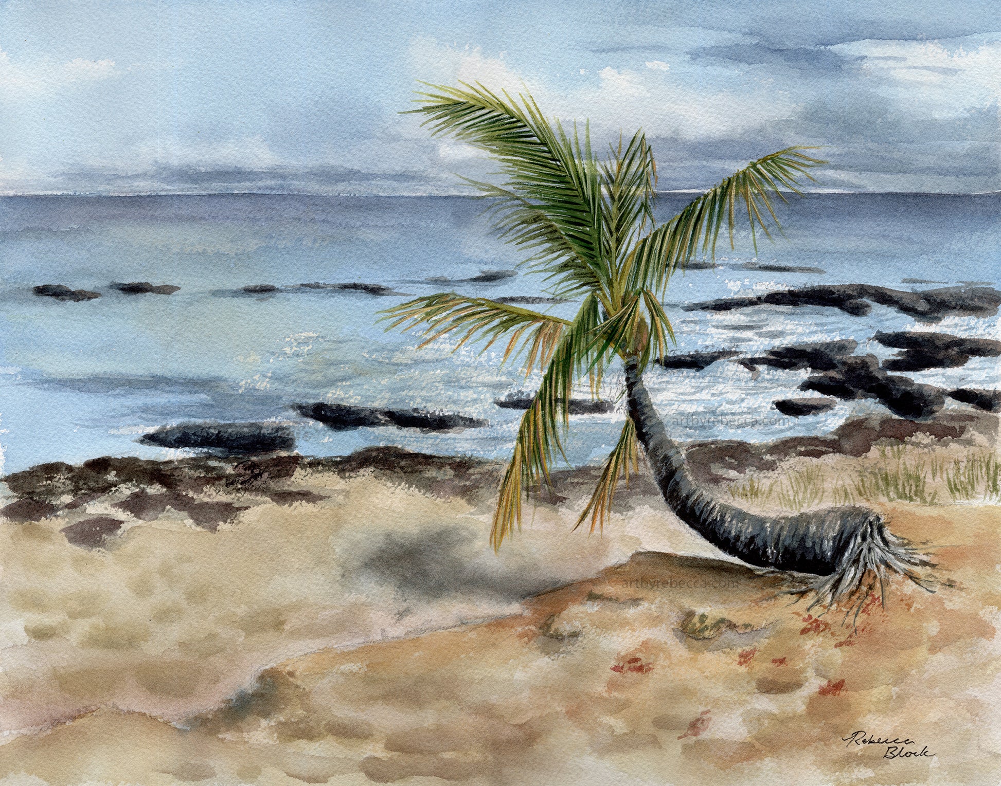 Leaning sideways, gnawed by coconut rhinoceros beetles, whipped by the wind daily, but still, he's hanging in there! 🌴 I, meanwhile, retreated from the sun and wind to finish this off back at the studio.
